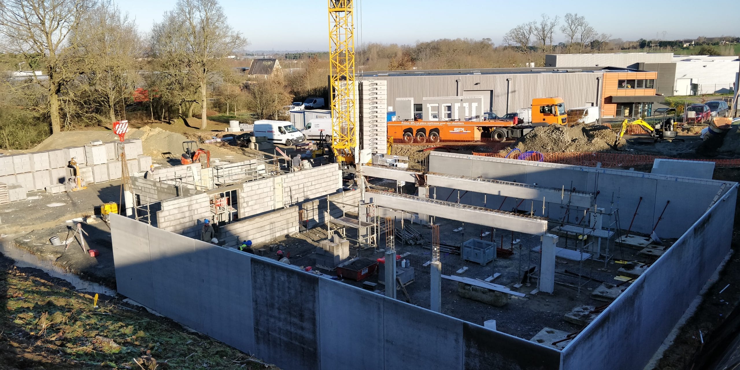 Situé sur la commune d’Ecouflant, ce chantier regroupant les bureaux administratifs et commerciaux ainsi que les services techniques avance à grands pas.