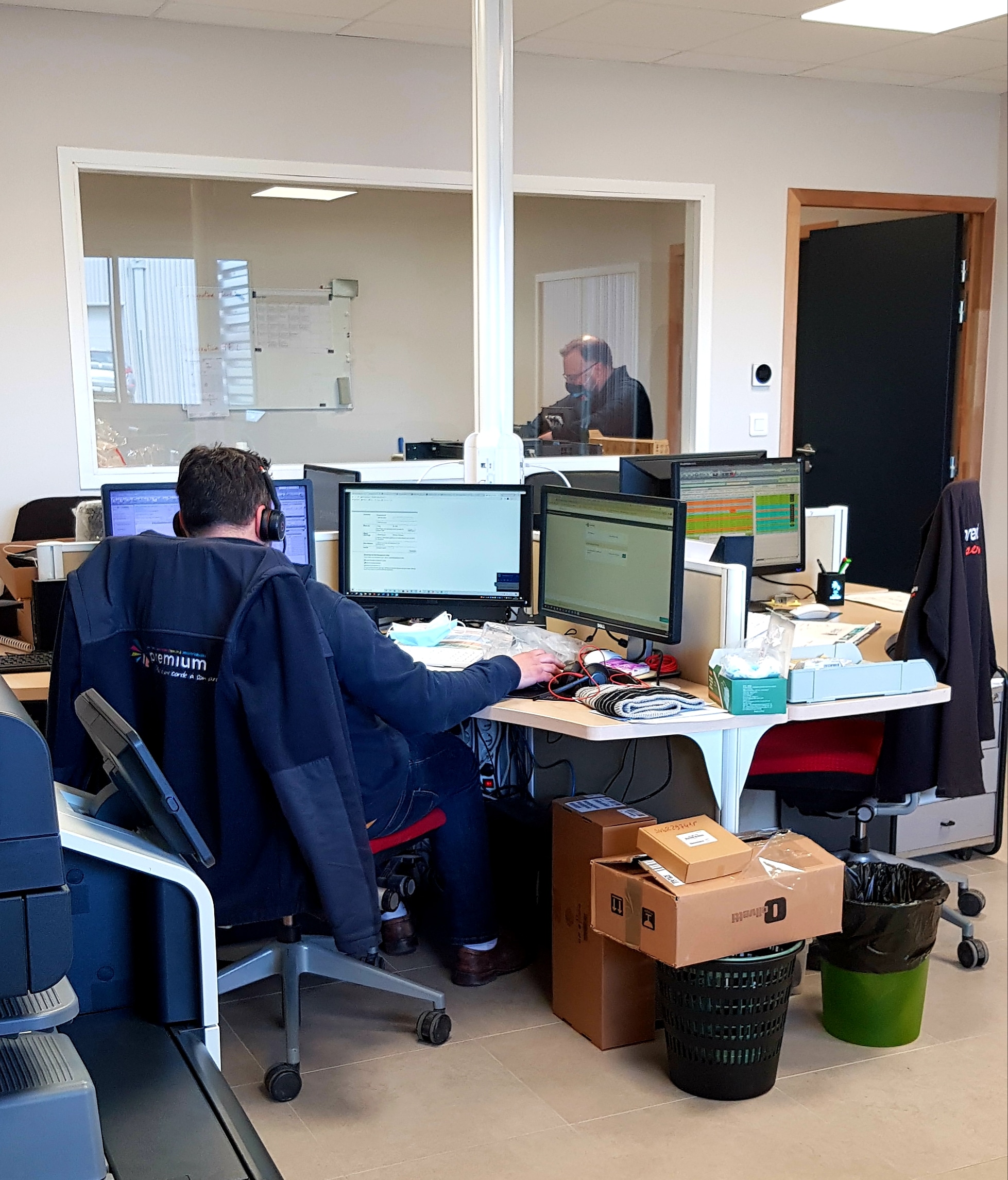 Le service technique dispose également d’un atelier de 300m2 pour stocker et configurer les systèmes d’impression. En doublant la surface de ce pôle, nous gagnons en réactivité et en efficacité pour équiper nos clients.
