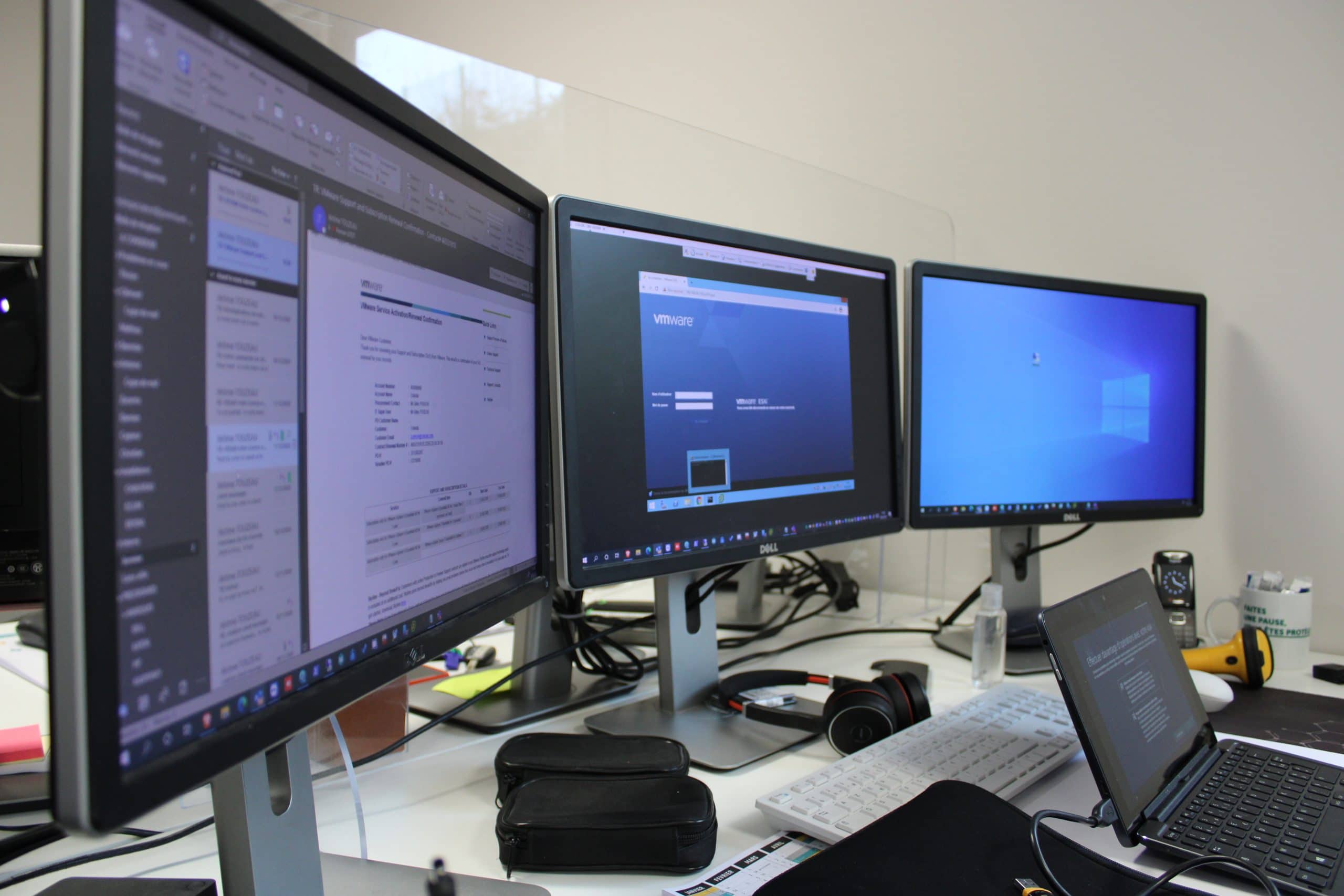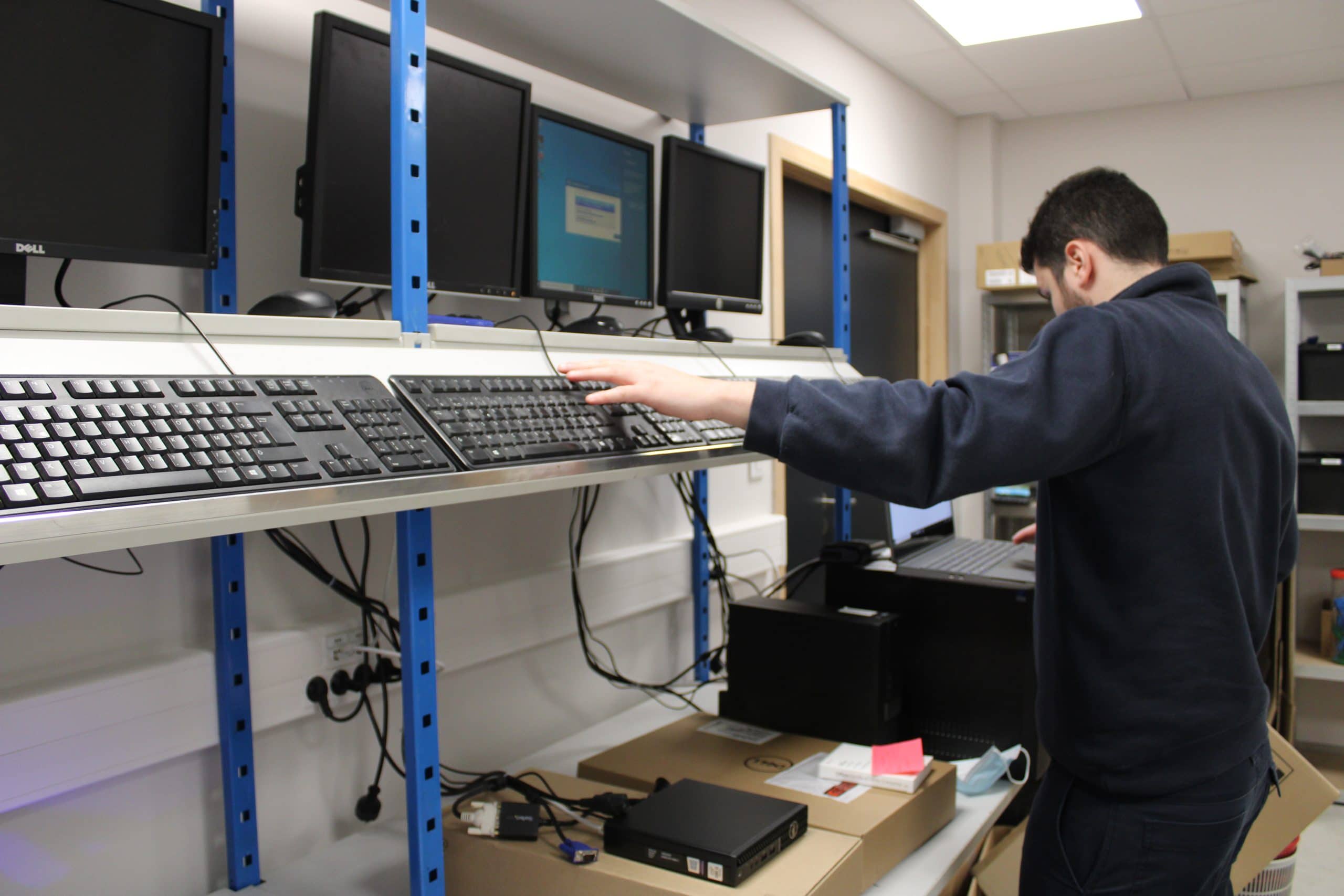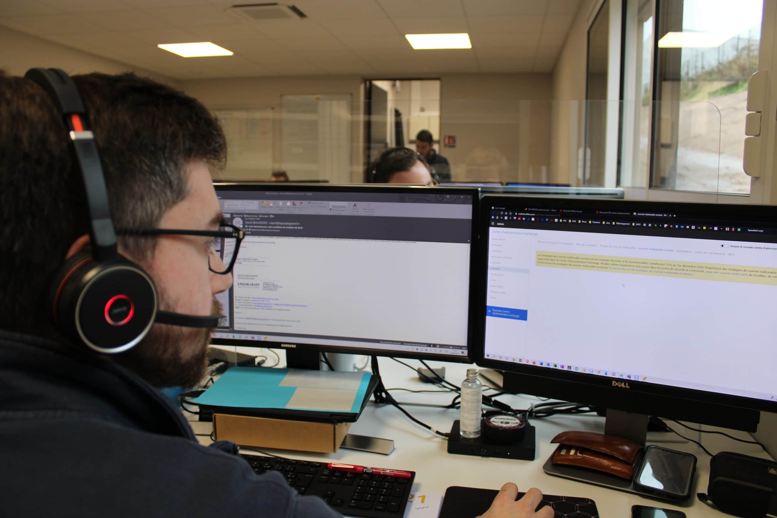 Au rez de chaussé, le service informatique bénéficie d’un bureau partagé, associé à un espace dédié au stockage et à la préparation du matériel informatique avant livraison chez nos clients. Au total : 90m2 consacrés au paramétrage des PC et des serveurs, et à une assistance téléphonique permettant d’intervenir à distance pour accompagner nos utilisateurs.